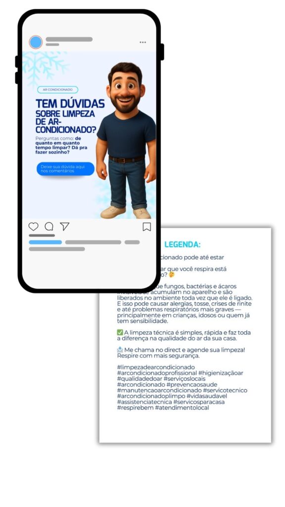 Você não precisa se preocupar com nada além de baixar o material e postar no seu Instagram, já que todos os posts já estão com conteúdo direcionado, LEGENDA PRONTA e até hashtags para atrair público interessado nos seus serviços!