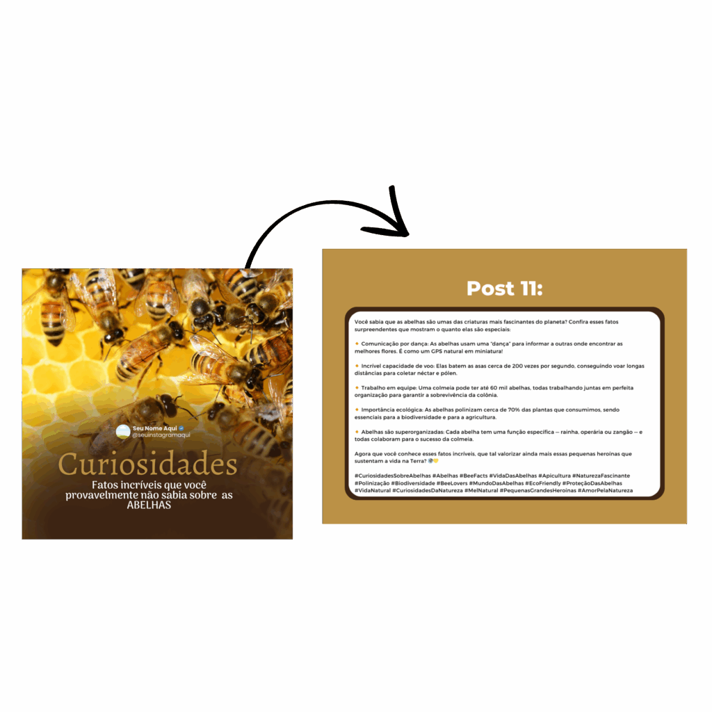 "DEIXE SUAS REDES SOCIAIS MAIS PROFISSIONAIS COM O PACK APICULTOR: tenha posts e legendas prontos para engajar e encantar seus seguidores!"